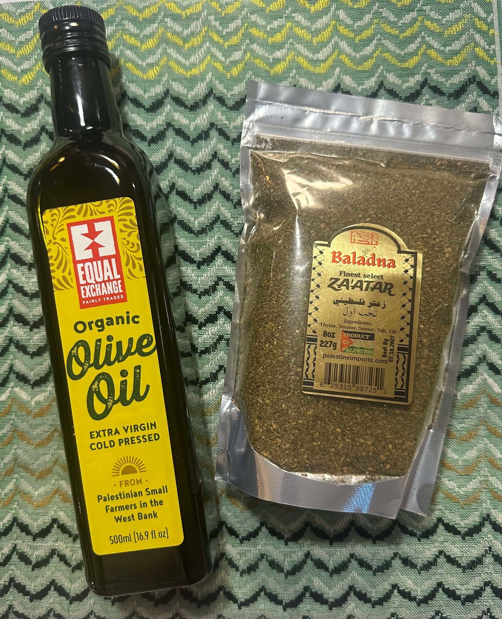 Equal Exchange EV olive oil 500ml, Za'tar 8oz, Gazan Dukkah 8oz