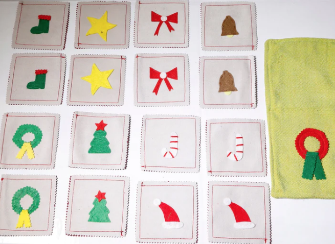 The game starts with all the cards face down and players take turns to turn over two cards. If the two cards have the same picture, then they keep the cards, otherwise they turn the cards face down again. The winner is the person with the most cards when all the cards have been taken.